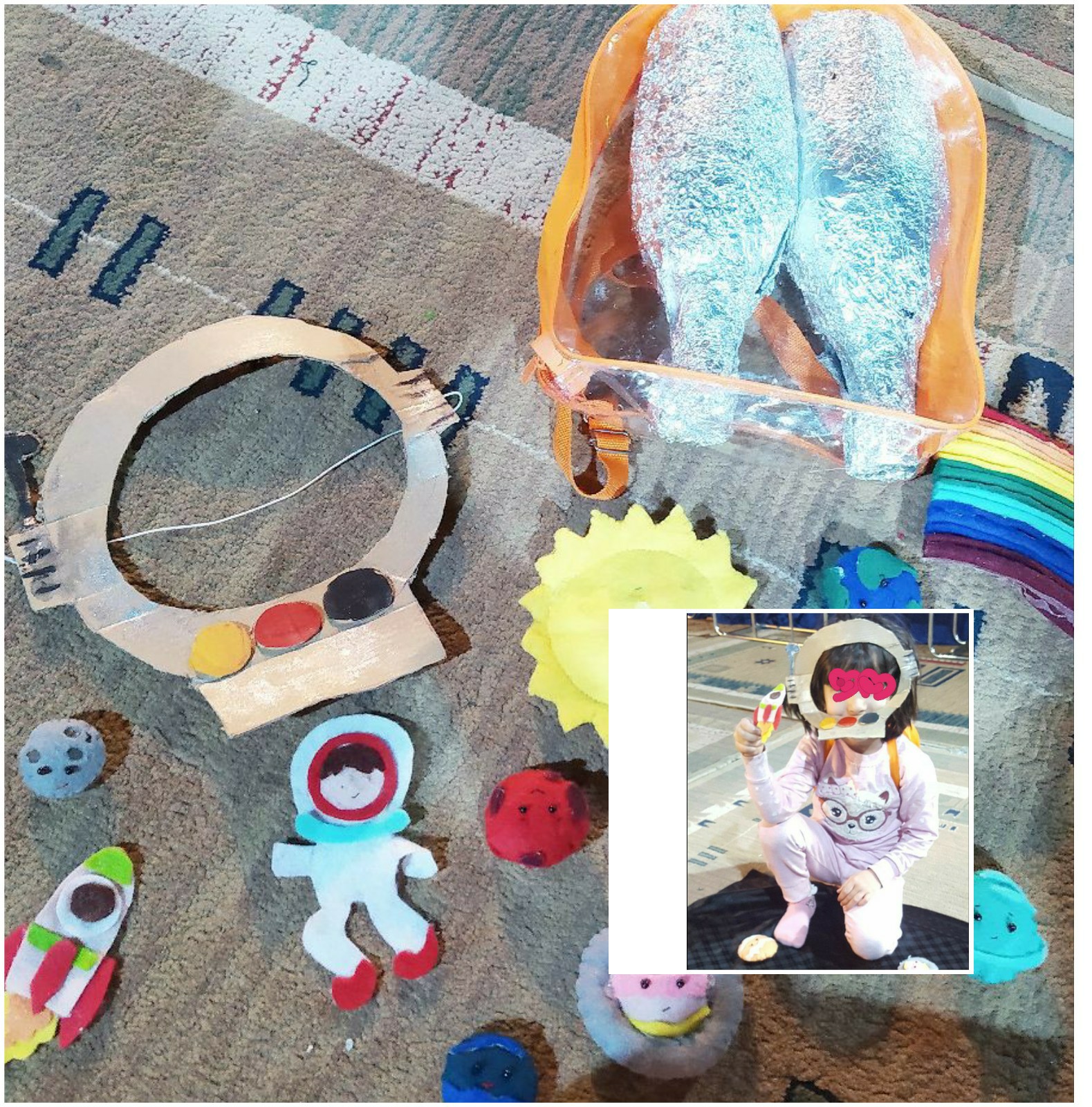 به نام خدا با یاری پیامبر عزیززززززمون در روز شنبه 🍃 #شنبه_17_اسفند #بازی_وانمودی #مشاغل #فضا_نورد #فضا #اموزش_غیر_مستقیم #بالای_دو_سال #بازی_نمایشی #کاردستی_با_دور_ریختنی_ها #آشنایی_با_چرخه_بازیافت #بازی_جنبشی #بازی_حرکتی با مقوا صورتک فضا نورد و درست کردیم و با بطری های خالی مخزن اکسیژن شو ساختیم و با شاتل فضایی به فضا پرتاب شدیم و چون توی فضا جاذبه نیست با انواع حرکت های مختلف مثل شنا کردن یا کشیدن طناب دوستمون تو فضا چرخ زدیم و به سیاره های مختلف سفر کردیم☄🚀🛰 *مواظب باشید زیاد به خورشید نزدیک نشید خیلی دااااغه* 🌏🌜🌝