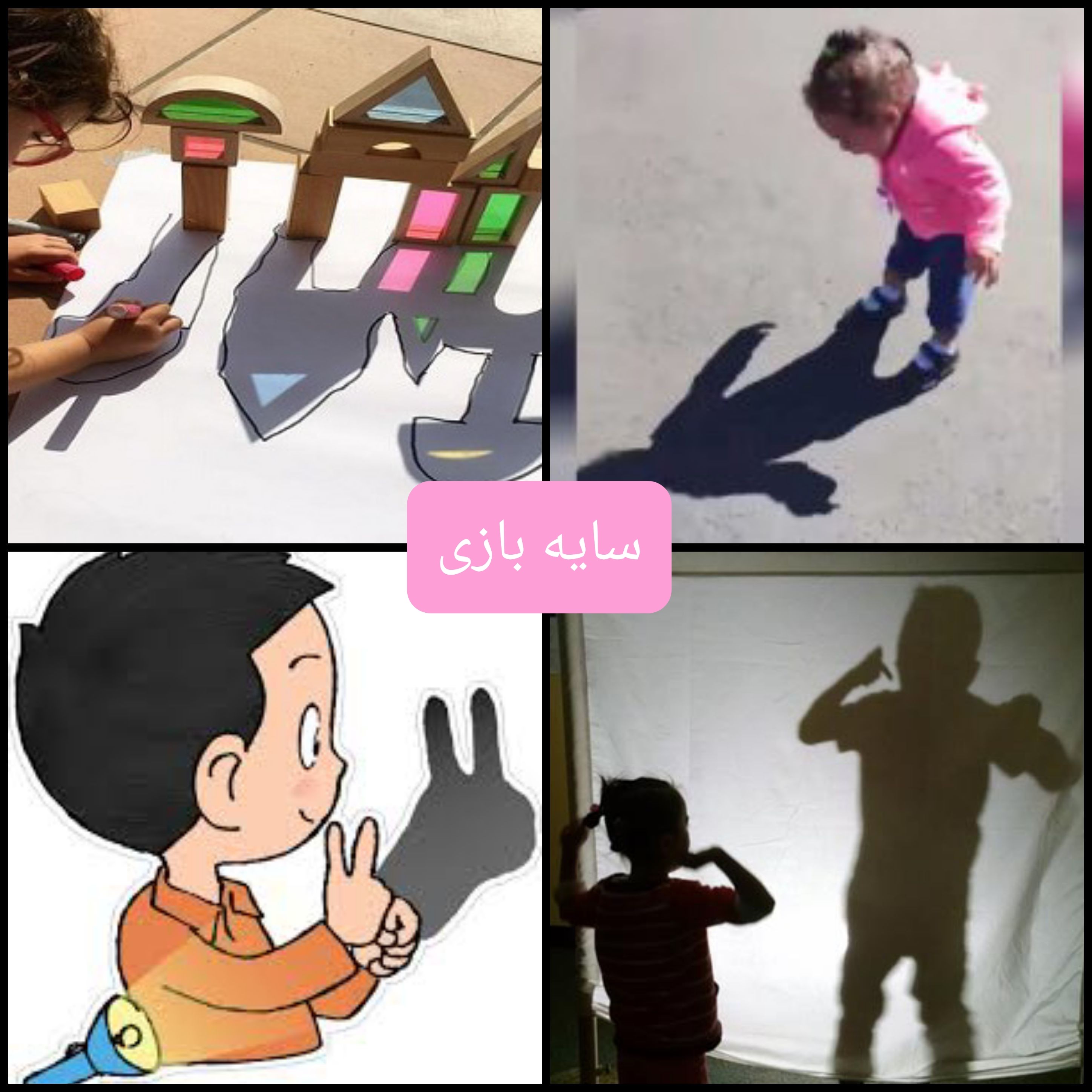نام بازی: سایه بازی #بازی چندگانه گروه سنی: ۳ سال به بالا مراحل بازی: ۱) ابتدا فضا رو تاریک میکنیم و با نور چراغ قوه، محیط و وسایل رو در تاریکی بررسی میکنیم که چه شکلی پیدا میکنن. ۲) به چند اسباب بازی در سایز و شکل های مختلف، نور میتابونیم و زاویه تابش نور رو تغییر میدیم و سایه ها رو بررسی میکنیم. نگاه کنیم در چه حالت هایی سایه بلندتر، کوتاهتر، کوچک تر و بزرگ تر میشه ۳) اسباب بازی های مختلف رو، روی کاغذ سفید میگذاریم و با یک مداد، سایه شون رو میکشیم. میتونیم تبدیلش کنیم به یک نقاشی. ۴) با انداختن نور روی دیوار، سعی میکنیم اشکال مختلف رو با دست درست کنیم. میشه حالت مسابقه داشته باشه. مثلا هرکس شبیه تر به شکل مورد نظر درست کرد یا نفر اول شکلی درست کنه و دیگری باید حدس بزنه چیه. ۵) کودک با سایه بازی، یک نمایش یا داستان برامون اجرا کنه. میتونه از اسباب بازی هاش یا دستش برای درست کردن سایه ها استفاده کنه. ۶) میشه نمایش دو نفره باشه، بدون هماهنگی قبلی و ببینیم داستان به چه سمتی میره. ۷) بازی تقلیدی با سایه به این صورت که نفر اول، یک ژست یا ادا درمیاره و نفر دوم بدون دیدن فرد و فقط از روی سایه، باید ژست او رو تشخیص بده و تقلید کنه. ۸) مسابقه گرفتن سایه همدیگه. نوبتی باید از هم فرار کنیم و هرکس سعی کنه سایه دیگری رو با پا بزنه