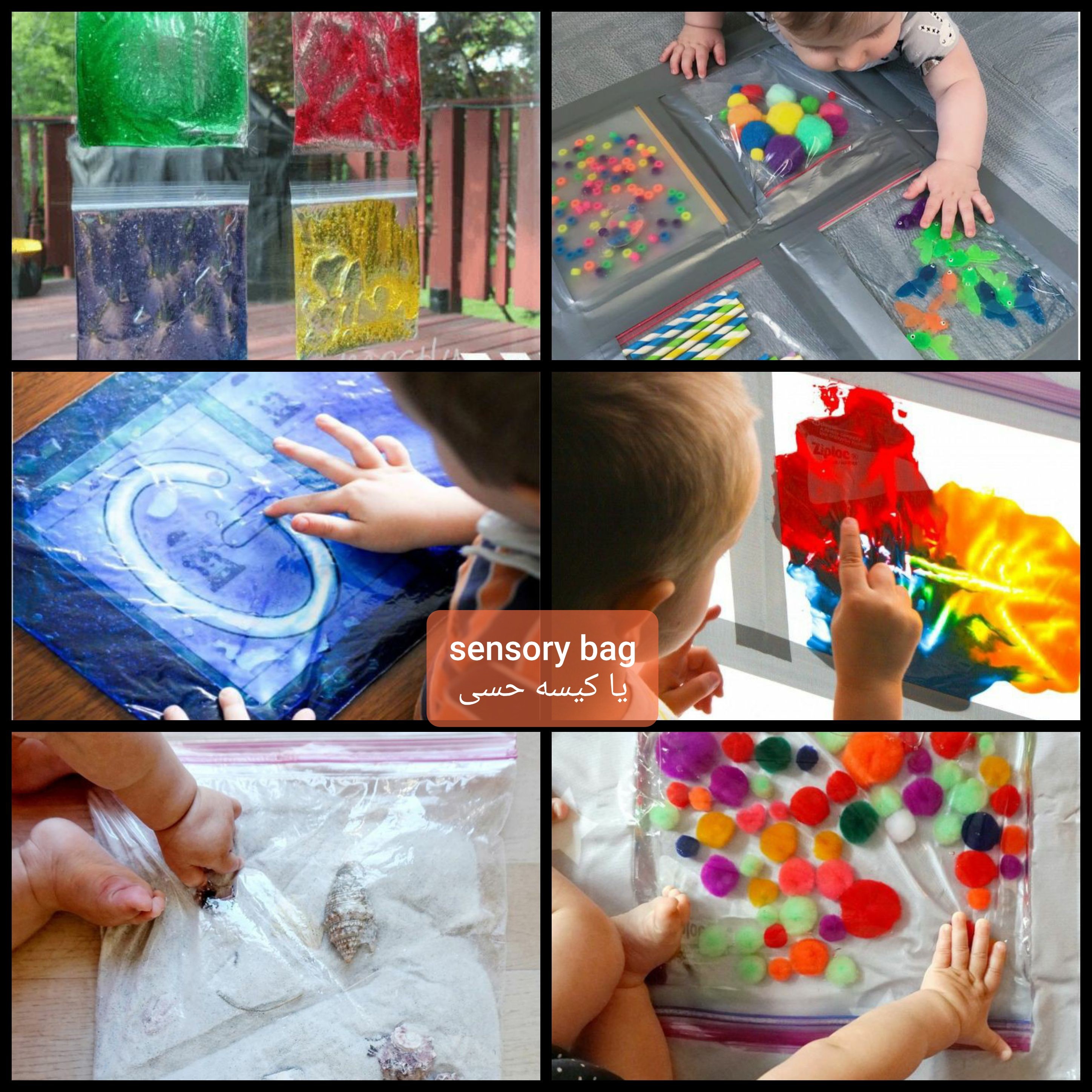Sensory bag یا کیسه حسی #تقویت_مهارت_حرکتی_ظریف #تقویت_حواس #تقویت_کلام گروه سنی: ۳ ماه به بالا تا حالا چیزی از sensory bag یا کیسه حسی شنیدین؟ سنسوری بگ ها کمک میکنن بدون کثیف کاری و بدون ترس از بلعیدن مواد ریز یا خطرناک، کودک رو در معرض انواع بافت ها، رنگ ها و ... قرار بدیم و حواس رو تحریک و تقویت کنیم که باعث رشد شناختی در اون ها میشه. علاوه بر اون میتونه باعث تقویت کلام، تقویت مهارت حرکتی ظریف و ... بشه. سنسوری بگ ها بسیااار متنوع اند و انواع بازی ها رو میشه باهاشون انجام داد. راحت درست میشن، قابل حمل هستن و تقریبا هزینه ای ندارن. میخوام یه توضیح کوتاه از چگونگی ساختنش بدم و از این به بعد هر چند وقت یه بار، یه مدلش رو باهم میبینیم. قسمت های مختلف سنسوری بگ ها: ۱. کیسه زیپ دار ۲. ماده پرکننده پایه(فیلر) که میتونه آب، روغن، مخلوط آب و روغن، رنگ ها، ژل مو، آرد، شن و ... باشه ۳. وسایل و مواد افزودنی که میتونه دانه های حبوبات، حروف فومی یا اسباب بازی های ریز، برگ، سنگ های کوچک صاف و گرد و هر چیز ریز و کوچک (مهمه که تیزی نداشته باشه تا کیسه سوراخ نشه) برای ساختش، نیاز به یک کیسه زیپ دار ضخیم داریم (میتونیم برای اطمینان از سوراخ نشدنش، از دولایه کیسه داخل هم استفاده کنیم) و مواد و وسایل مختلف رو داخل این کیسه میریزیم( فیلر). و بعد برای محکم شدن کار و جلوگیری از پاره شدن و یا نشت مواد داخلش، دور تا دور کیسه رو با چسب پهن یا لنت برق، میچسبونیم. میتونیم کیسه رو با چسب به میز، زمین یا حتی شیشه پنجره و دیوار فیکس کنیم و یا بذاریم کودک آزادانه دست بگیره و باهاش بازی کنه. به همین سادگی ما یه اسباب بازی حسی فوق العاده داریم.
