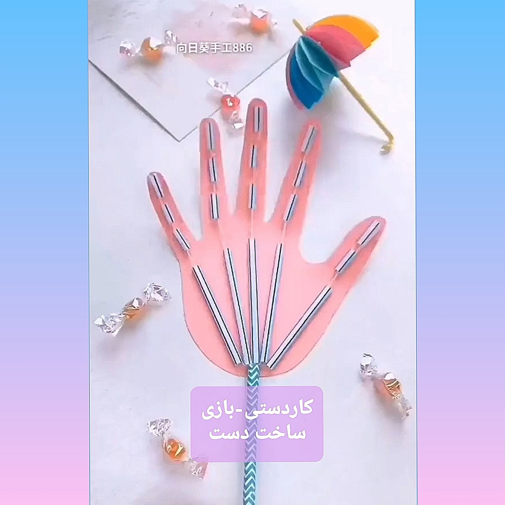 #کاردستی_بازی #مهارت_حرکتی_ظریف #شناخت_دستها #تقویت_دقت_وتمرکز گروه سنی: #۵سال #۶سال #۷سال یکی از فعالیت های مهم برای کوچولوها، توجه دادن اون ها به اعضای بدن شون، شکل، نحوه عملکرد و کارکردهای اون هاست. اینطوری بچه ها یاد میگیرن به داشته هاشون با دقت نگاه کنن و قدرشو بدونن. 🧐😍 مثلا دست هامون. چقدر بهشون توجه کردیم؟ 🖐✌ چه کارهایی با دستمون انجام میدیم؟ اگر نتونیم از دستمون استفاده کنیم، کارهامون رو چجوری انجام میدیم؟ 🤔 اصلا دست هامون چه شکلی هستن؟ 👐 این کاردستی جالب، برای شناخت دست ها، انگشت ها و مفاصل و کارکردهای ساده دست، خیلی کاربردیه. بچه ها هم کیف میکنن.🤗 ابزار لازم: نی، مقوا، چسب، کاموا، قیچی مطابق فیلم کاردستی رو بسازین. میتونین برای اینکه نخ های انگشت ها باهم قاطی نشن، در ناحیه مچ دست،( به جای یک نی، که همه نخ ها از توش رد میشن) ، از پنج نی استفاده کنین و نخ هر انگشت رو از یکیش عبور بدین. یا از رنگ های مختلف کاموا استفاده کنین. بازی: 🎈 حالا میتونین با این دست ها، بازی کنین. مثلا گلوله های کاغذی رو ، روی زمین پخش کنین و باید با استفاده از این دست ها و باز و بسته کردنشون، گلوله ها رو از روی زمین بردارین. هرکی گلوله بیشتری جمع کرد برنده ست. 🎈 یا اجسام کوچک با وزن های مختلف رو بچینین و به ترتیب از سبک به سنگین، بلندشون کنین و ببینین دست چه کسی قدرت بیشتری داره و جسم سنگین تر رو میتونه بلند کنه. 🎈 از کوچولوتون بپرسین چه کارهایی رو میشه با این دست انجام داد و چه کارهایی رو نمیشه؟ شما چه بازی هایی به ذهنتون میرسه؟ #بازی #کودک_خلاق #بازی_خلاق