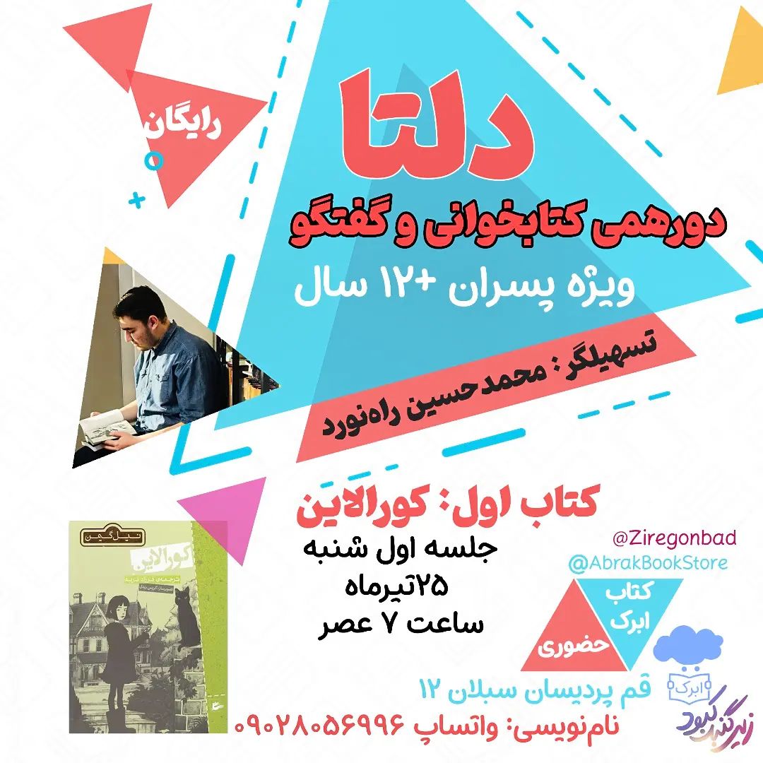 🏖️دلتا پیوند رود و دریاست نوبتی هم باشد نوبت پسرهای کتابخوان است.👦🏻 حلقه کتابخوانی دلتا واحد پسران نوجوان هم راه افتاد.🙋🏽♂ در حلقه کتابخوانی دلتا چه میکنیم؟ با کمک هم کتاب انتخاب میکنیم. در مدتی معین کتاب را مطالعه میکنیم و در جلسات دلتا درباره آن با هم گفتگو میکنیم حسابی داستان را زیر و رو میکنیم و دل و روده داستان را میریزیم بیرون. ✅ نکته: برای جلسه اول نیاز نیست کتاب را خوانده باشید. جلسه اول برای آشنایی با تسهیلگر حلقه و روش گروه است. تسهیلگر دلتای پسران، محمد حسین راهنورد یک کتابخوان حرفهای است. جوانی پُرخوان که هم در کتابخانه مشغول است هم برای کتابها ریویوهای باکیفیت مینویسد و هم پادکست تولید میکند. خلاصه همه جوره به ادبیات خدمت میکند. @bookscriber.podcast 🔻🔺ظرفیت محدود🔺🔻 🔻برای نامنویسی میتونید همینجا دایرکت بدین @abrakbookstore @abrakbookstore @ziregonbad @ziregonbad 📍محل برگزاری: قم ، پردیسان. سبلان ۱۲. کتاب ابرک 👇اگه سوالی دارید 🔻 واتساپ ۰۹۰۲۸۰۵۶۹۹۶ #حلقه_کتابخوانی #رمان_نوجوان #کورالین #کرولاین #کورالاین #پسرنوجوان #نوجوان_پسر #دورهمی_کتابخوانی #کتابخوانی #رمان #باهم_خوانی #همخوانی #جمع_خوانی #ابرک #زیرگنبدکبود #دلتا #قم