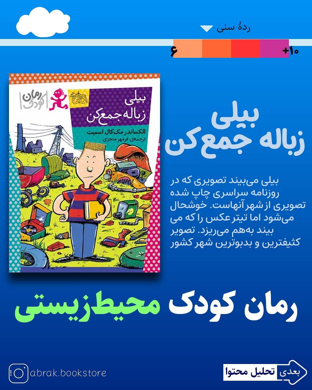 جایزهی “کثیفترین شهر” را به کدام شهر دادهاند؟ شهری که بیلی در آن زندگی میکند! بیلی از این بابت بدجوری ناراحت است. انگار هیچ کس به فکر کاری نیست. بالاخره یک نفر باید آستین بالا بزند و اوضاع شهر را روبهراه کند. اول کار، بیلی به فکر جمعآوری کاغذهای باطله میافتد. بعد او و خواهرش فکرهایشان را روی هم میریزند و با کمک همدیگر قوطیهای کنسرو را جمعآوری میکنند. مدتی بعد، با هم مسابقه طراحی سطل زباله بر پا میکنند. اما بزرگترین، هیجانانگیزترین و عجیبترین اتفاق، مسابقه چرخ و موتورهای بازیافتی است . . . 🏅نامزد جایزه محیط زیست انگلستان در سال 1996 📕نام کتاب: بیلی زباله جمع کن ✏️نویسنده: الکساندر مک کال اسمیت مترجم: فرمهر منجزی ناشر: #نشر_افق #فندق 👫رده سنی: 6 تا 10 سال 💵قیمت: 6هزارتومان 📩برای تهیه کتاب دایرکت بدهید ✔️به همراه کاربرگ و راهنمای فکرورزی رایگان😍 🔔تحلیل محتوای کتاب را در اسلایدهای داخلی ببینید @abrak.bookstore @abrak.bookstore 🌧️🌧️🌧️🌧️🌧️🌧️🌧️ #کتاب_کودک #کتاب #معرفی_کتاب #معرفی_کتاب_کودک #پیشنهاد_کتاب #محیط_زیست #زباله #آلودگی #رمان_کودک #رمان #ادبیات_کودک #ادبیات #معرفی_رمان #پیشنهاد_رمان #کتابخوانی #کودک_کتابخوان