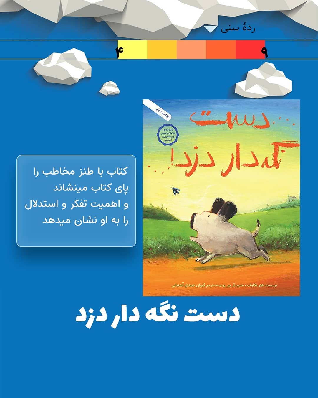 خلاصه داستان سگی به نام مکس راه افتاد تا به فرمان مزرعهدار، دزد هویجها، توتها، لوبیاها و گیلاسها را بگیرد. او حشره کوچکی روی برگ هویج دید و فکر کرد دزد اوست. هویجها را به خرگوش سپرد و رفت دنبال حشره. اوبیاها را به بز سپرد و رفت دنبال حشره دزد، گیلاسها را به کلاغها سپرد و رفت دنبال حشره دزد. و در آخر حشره را از مزرعه بیرون کرد. واقعا حشره دزد بود؟ 📕نام کتاب: #دست_نگه_دار_دزد 👫رده سنی:4 تا 9 سال 💵قیمت: 25هزارتومان 📩برای تهیه کتاب دایرکت بدهید ✔️به همراه کاربرگ و راهنمای فکرورزی رایگان😍 🔔تحلیل محتوای کتاب را در اسلایدهای داخلی ببینید @abrak.bookstore @abrak.bookstore 🌧️🌧️🌧️🌧️🌧️🌧️🌧️ #کتاب_کودک #کتاب #معرفی_کتاب #معرفی_کتاب_کودک #پیشنهاد_کودک #فروشگاه_کتاب #کتابفروشی