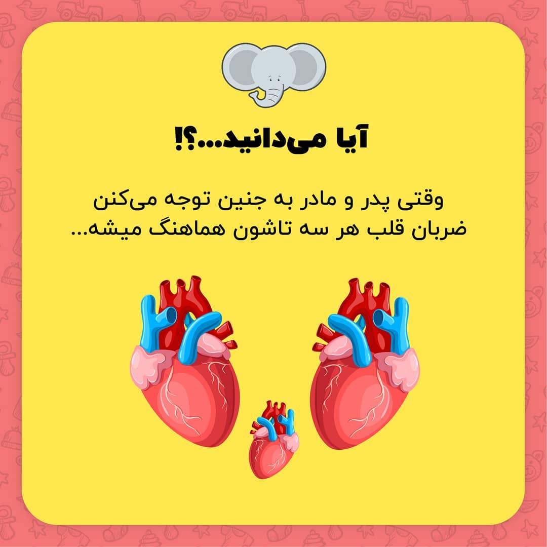 اولین بار که ضربان قلب کوچولوتون رو شنیدن چه حسی داشتین؟ . جالبه بدونین تحقیقات نشون داده که وقتی مامان و بابا به جنین توجه میکنن یا باهاش حرف میزنن، ضربان قلب هر سه تاشون با هم هماهنگ میشه.😍 این یکی از تاثیرات عشقه و نشون میده که عشق به فرزند چقدر میتونه عمیق باشه و چقدر روی کودک حتی توی دوران بارداری تاثیر گذر باشه. 💗 . شاید خیلی سخت باشه که اون حس رو توضیح بدیم. قطعا هر کس تا خودش تجربه نکنه، متوجه نمیشه. ولی بیایین توی کامنت از حس اون لحظه برامون بگین. 😍😍 . . . . . . . . #عشق #عشق_مادر #عشق_پدر #پدر #مادر #بارداری #حاملگی #حامله #هفته_بارداری #جنین #نوزادپسر #نوزاددختر #بچه_ناز #نوزاد #نینی #اطلاعات_عمومی #جالب #دانستنی #علمی #عجیب #باحال #دانستنی #دانستنیها #علمی