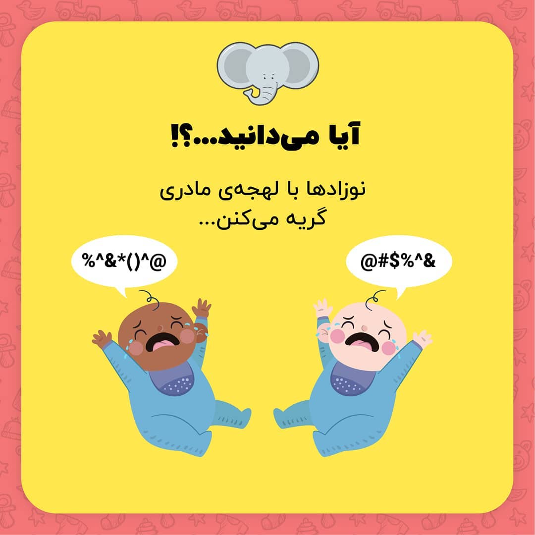 . مامانای باردار رو منشن کنین 😍 . حتما میدونین که جنین توی رحم صدای اطراف رو میشنوه و بعد از تولد صدای مادرش رو تشخص میده. تحقیقات و مطالعاتی که روی نوزادهای کشورهای مختلف انجام شده نشون داده که نوزادها با لهجهی مادریشون گریه میکنن. . . . . . . . . #جالب #دانستنی #علمی #عجیب #باحال #دانستنی #دانستنیها #نوزادپسر #نوزاددختر #بچه_ناز #نوزاد #نینی #کودکی #نینی_ناز #بارداری #زایمان #زبان #گویش #جنین #مادر