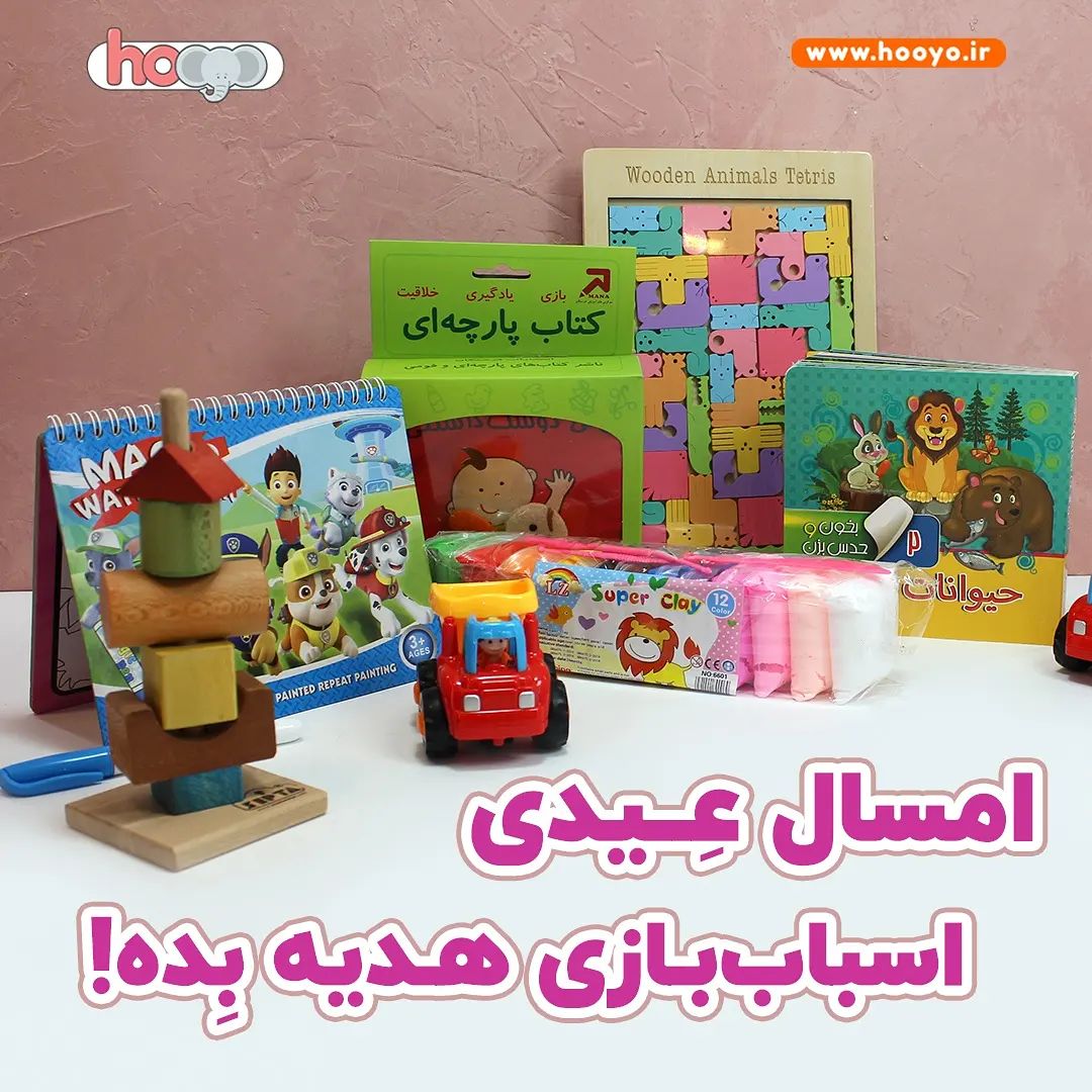 . امسال عیدی اسباب بازی هدیه بده! 😍 ما چند تا اسباب بازی با قیمت مناسب براتون آوردیم که راحت انتخاب کنید . شما بگین 🔹️کتاب باشه؟ 🔹️چوبی باشه؟ 🔹️موزیکال باشه؟ 🔹️ماشین باشه؟ 🔹️یا... . ⭐ خمیر هوا سبک: ۳۵ هزار تومن ⭐ ستون اشکال: ۱۲۳ هزار تومن ⭐ دفترچه نقاشی جادویی: ۹۰ هزار تومن ⭐ بخون و حدس بزن: ۳۵ هزار تومن ⭐ تتریس: ۹۹ هزار تومن ⭐ ماشین میوهای: ۶۸ هزار تومن ⭐ دالی توپه: ۱۵۳ هزار تومن . #عیدی #عیدانه #عید #اسباب_بازی_کودک #اسباب_بازی #اسباببازی_آموزشی #اسباب_بازی_چوبی #اسباب_بازی_دخترانه #اسباب_بازی_موزیکال #اسباببازی_پسرانه #اسباب_بازی_ارزان