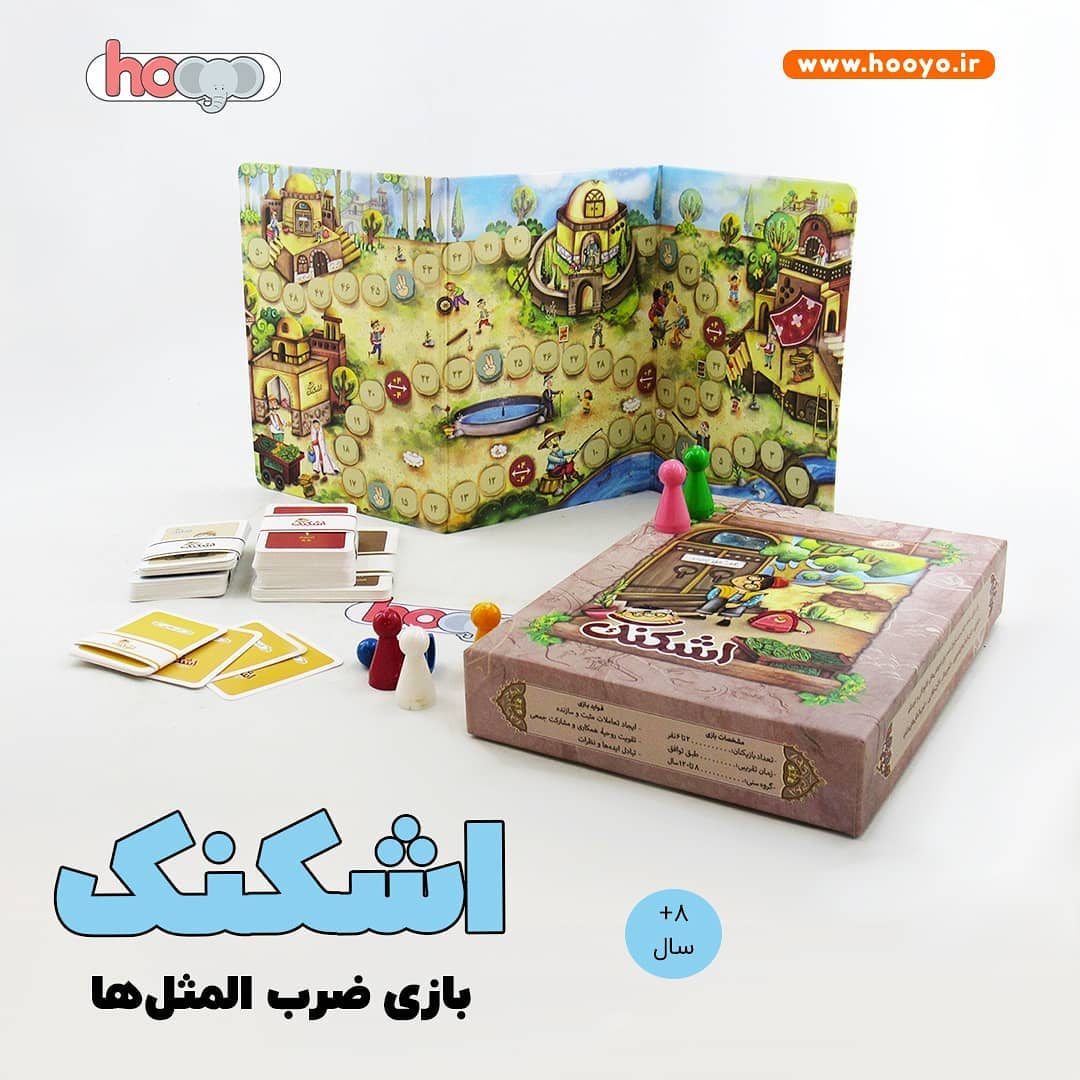 . "کوری عصا کش کور دیگر است!"😎 اینو پدربزرگم گفت، وقتی که کوچیکه به بزرگه میگفت بیا کفشامو بپوشون!👟 حالا شما تصور کن که بزرگه خودش بلد نیس کفشاشو بپوشه!😅 پدربزرگم فارسی رو شیرین و غنی حرف میزد.👴 توی موقعیت های مختلف، ضرب المثل میگفت و یه لبخند گشاد میشوند روی لبمون. این شکلی:😊 اشکنک دقیقا بازیِ ضرب المثل هاست... توی کارتای سوال باید ضرب المثل رو حدس بزنیم، امتیاز بگیریم و زود برسیم تهِ بازی. ⭕ برای چه سنی مناسبه؟ ۸ سال به بالا ⭕ قیمتش چقدره؟با احترام ۱۰۰ هزار ت