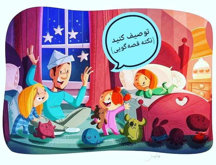 با توصیف، داستان را زنده کنید. وقتی میگویید خاله پیرزن از سوراخ کدو بیرون را نگاه کرد گرگ را دید کمی محیط یا حالت گرگ یا هر چه به ذهن خلاقتان میرسد را توصیف کنید. در توصیفات از حواس پنجگانهتون استفاده کنید. البته لازم نیست همهشان را یکجا به کار بگیرید. مثلا خاله پیرزن از سوراخ کدو گرگ را میبیند( بینایی) و حال و روزش را توصیف میکند و صدای قار و قور شکم گرگ را میشنود.( شنوایی) گفتن جزییات داستان را خیالانگیزتر میکند. این توصیف کردن علاوه بر فوایدی که گفتیم برای قصهگو هم مفید است. کلمات از بایگانی ذهن خارج میشوند و دایره لغاتمان گستردهتر میشود. یک تمرین خلاقیت برای قصهگوست که داستان را چطور ببیند بشنود و درک کند. منتظر تمرین برای نکتهای که گفتیم باشید. #زیرگنبدکبود #زیر_گنبد_کبود #کتاب #کتاب_کودک #قصه #قصه_گویی #کتابخوانی #کتابخانه #کتاب_خوب #لالایی #داستان #ادبیات_کودکان #شعر_کودک #داستان_کودک #کتابخوانی #کتابخوارها #معرفی_کتاب #راهنمای_مطالعه #راهنمای_والدین #فرزندپروری #مربی_کودک #راهنمای_کتاب #والدین_قصه_گو #تصویرگری #آموزش_قصه_گویی #آموزش #معرفی_کتاب_کودک #خردسال #داستان_سرایی #نقالی #تربیت_فرزند