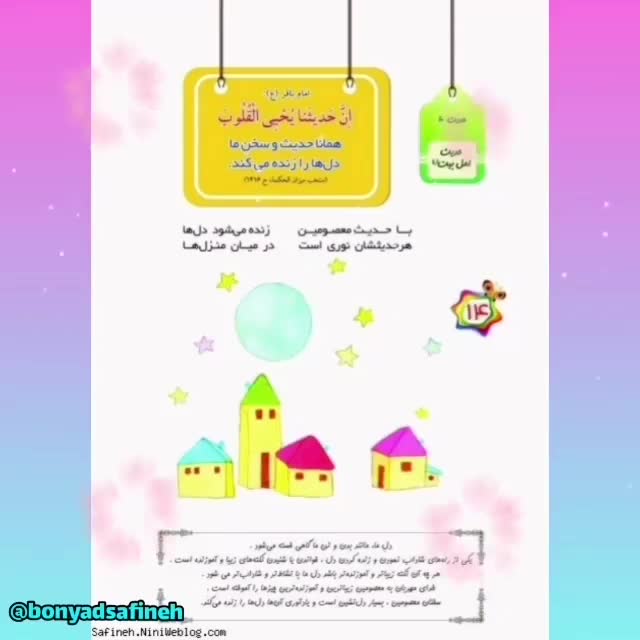 چند سال پیش، در اول ماه رجب، این بازی رو انجام دادیم: کلاه توپی، روی سر بچه ها قرار می گرفت و مربی شروع به خواندن حدیث مدنظر می کرد،وقتی مربی از خواندن باز می ایستاد،کلاه بر سر هر یک از بچه ها بود او می بایست حدیث و شعر را برای دوستانش بخواند و اما حدیث امام محمد باقر علیه السلام: انَّ حدیثَنا، یُحیی القُلوب با حدیث معصومین زنده می شه دلامون هر حدیثشون نوره هر حرفشون هم نوره اما یکی از نکات مهمی که در این جلسه می خواستم به صورت عملی،به بچه ها یاد بدهم ؛ این بود که بچه ها به اطرافشون خوب نگاه کنند و با کمی خلاقیت،از اشیا و اسباب بازی های خود،اسباب بازی های جدید بسازند؛ کلاه توپی ما،قسمت بالای چراغ خواب منزلمان بود که با آن، این بازی ها را طراحی کردیم. عیدتون هم مباااارک. 🌸🌺🌹🌼 #بنیادسفینه #بنیاد_سفینه #سرگرم_آموزی #خلاقیت #حدیث_امام_باقر #میلاد_امام_باقر @bonyadsafineh #bonyadsafineh #bonyadsafineh.fan @bonyadsafineh.fan
