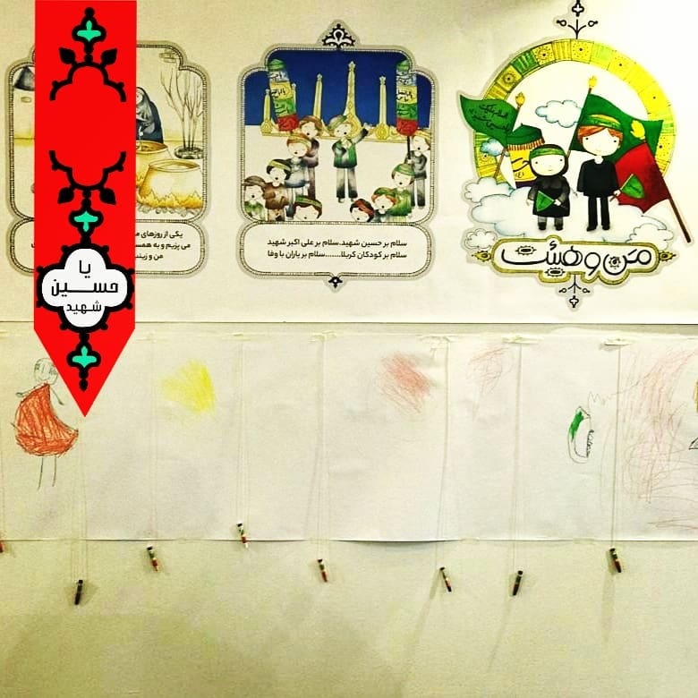 🏴 ✨ لطف امام حسین ع باعث شده که هیئت های کودک در کنار هیئت بزرگترها راه بیفتد... #پیشنهادی_برای_هیئت_کودک ✅ و شاید شما هم دوست داشته باشید فضایی را در هیئت تان به هیئت کودک اختصاص دهید. 🖼 برای فضا سازی هیئت کودک: 🏴 نیازی نیست از پرچم ها و پارچه ی مشکی استفاده کنید. می توانید یک یا دو پرچم به رنگ های سبز و قرمز به دیوار بزنید. 🌙نیازی نیست کل فضا را پر کنید. فقط سعی کنید یک یا دو المان از محرم در فضا باشد. 📚می توانید تصاویر مربوط به کتاب های کودکانه را به دیوار ها بزنید. ✂️می توانید مقداری پارچه و قیچی به کودکان بدهید و از آنها در فضا سازی هیئت کودک کمک بگیرید. 🖌می توانید روی دیوار ها را کاغذ بچسبانید، تا بچه ها روی آن نقاشی بکشند. هم یک فعالیت است و هم خودش نوعی فضا سازی محسوب می شود. 🗺 می توانید فضایی را به نمایشگاه کار کودکان اختصاص دهید. هر شب، دست سازه هایشان را در آنجا قرار دهید، تا دیگران هم بتوانند ببینند. 💡یادمان باشد برخی المان ها مثل شمع، کودک ناراحت، کبوتر شاید برای ما یادآور کربلا باشد اما به کودک حس غمگینی را منتقل می کند و برایش خوشایند نیست. قرار است ما خاطره ای خوب در ذهن کودکان ماندگار کنیم. #هیئت_کودک #سرباز_حسینم #محرم #کودک #هیئت #فضا_سازی