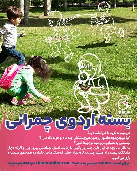 . به نظرتون چقدر میشه بچه هارو توخونه نگه داشت؟ . تونستین یه همبازی خوب برای بچه ها پیداکنین؟ . تو این اوضاع چه جوری بچه ها رو بیرون ببریم؟ 🤔 . اصلا نگران نباشین! فعالیت تو فضای باز، با رعایت نکات بهداشتی ممنوعیتی نداره و اتفاقا لازمه که ما به نیاز بچه ها نسبت به طبیعت، توجه کنیم . . برای همین براتون بسته ی اردوهای چمرانی رو درنظر گرفتیم که هفته ای یک بار، با تعدادکم، همدیگرو میبینیم و بچه ها هم بازی های هیجانی و تعاملی با طبیعت و دوستانشون انجام میدن.😇 . این بسته انتخابی هست؛ یعنی هم میتونید مهدتعاملی رو با اردو شرکت کنید هم بدون اردو😊 . برای اطلاع از جزئیات مهد تعاملی و اردوهای چمرانی به سایت چمرانی ها در بیوی صفحه مراجعه کنید👇 . Chamraniha.com . #اردو#اردو_های_چمرانی #چمرانی_ها #حسینیه_کودک_شهید_چمران
