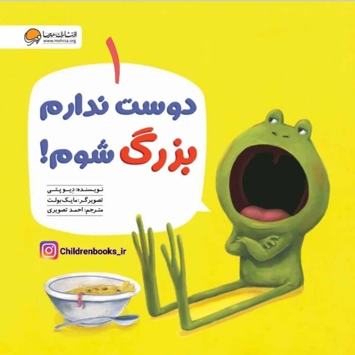 📙 دوست ندارم بزرگ شوم! 🖊 دیو پتی 🖌مایک بولت انتشارات مهرسا برای گروه سنی ب ادامه در پست بعدی... . . . . . #ب_چیلدرن_بوکز #بازی #رشد #رشد_فردی #کودک #کتاب #کتابخوانی #سرگرمی_کودک #سرگرمی #کاردستی_کودک #کاردستی_آسان #کودکانه #داستان #قصه