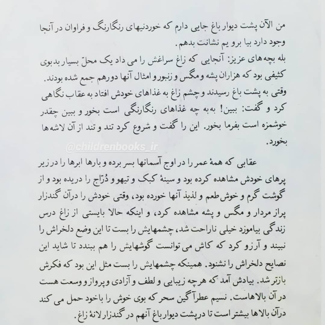 ادامه پست قبل... کتاب امروز یه داستان خیلی آموزنده هست،که خوندش تاثیر زیادی روی رشد اخلاقی کودک داره. . این داستان ها به دلیل نگارش ساده ای که دارند؛ کودکان را درگیر جزئیات بی اهمیت نمی کنند و مفهوم اصلی داستان را به کودکان منتقل می کنند. فکر میکنم این کتاب مناسب #گروه_سنی_ج به بالا باشه. پس حتما نظراتتون رو بعد از مطالعه کتاب واسم بنویسید😍 عنوان : داستان عقاب و زاغ پديدآورنده : معینیان، مهدی تصويرگر : واحد گرافیک اچ ناشر : تهران: مهدی معینیان سال انتشار :۱۳۶۴ سراینده : دکتر_پرویز_ناتل_خانلری #ج_چیلدرن_بوکز #چیلدرن #کتاب_کودک #داستان_شب#داستان_آموزنده #داستان_عقاب_و_زاغ #قصه_آموزنده