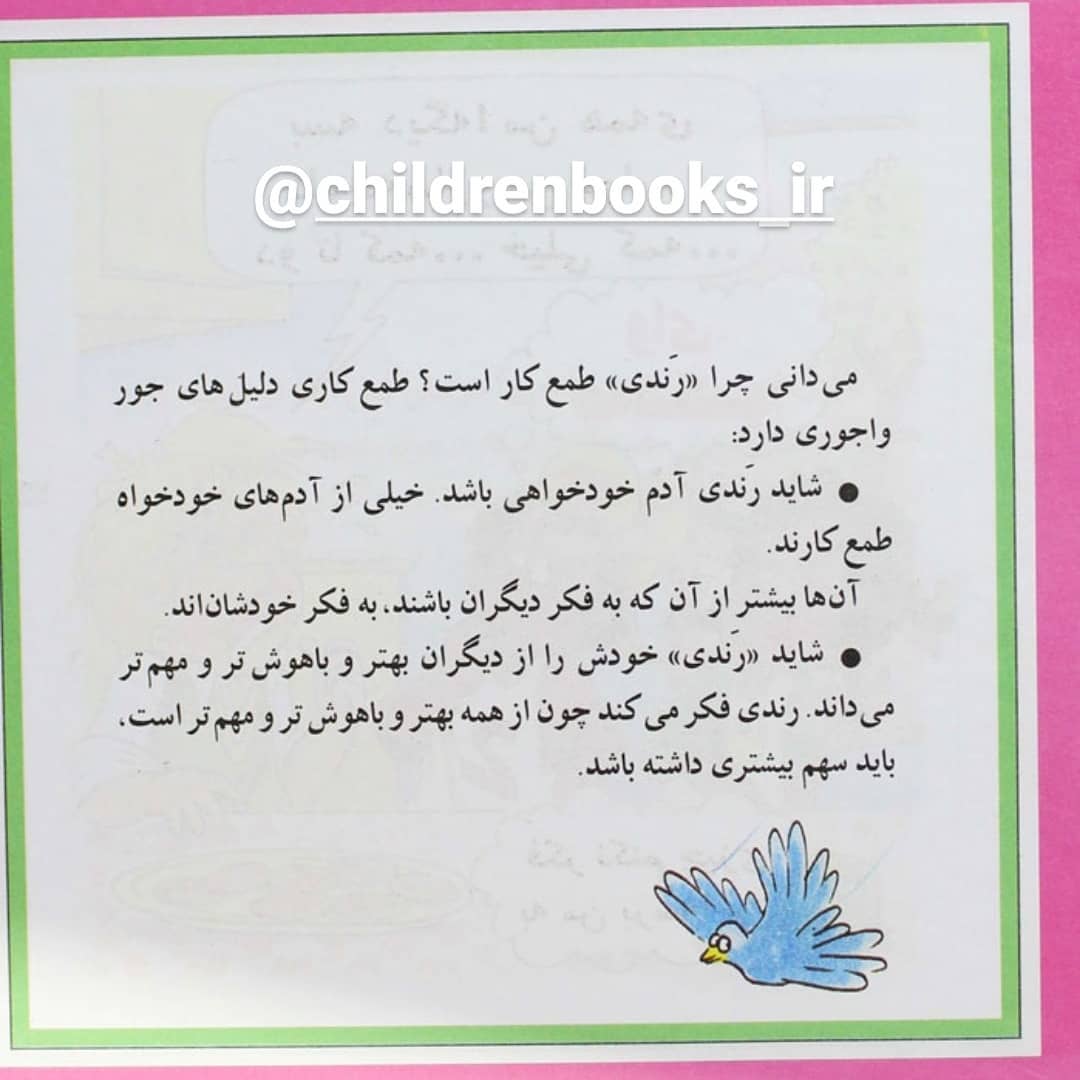قسمت دوم کتاب 🤗🤗🤗🤗🤗 عنوان :طمع کاری، نه! پديدآورنده :بری، جوی ویلت ترجمه؛ امیر صالحی طالقانی ناشر :تهران: نوای مدرسه سال انتشار :1383 🤗🤗🤗🤗🤗 #الف_چیلدرن_بوکز #ب_چیلدرن_بوکز #چیلدرن_بوکز #کتابخوانی #کتابخوانی_مجازی #کتاب_خوب #قصه_درمانی #قصه_خوانی #قصه_گویی #قصه_شب #قصه_کودک #داستان_شب #داستانهای_پندآموز