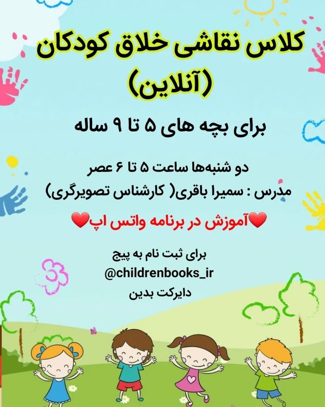 خووووب ترم جدید نقاشیمون داره شروع میشه🥰 کلاسها دوشنبه ها ساعت ۵ تا ۶ عصر هست هزینه یک ترم ۲۰۰ تومنه ۱۰ جلسه و از ۴ بهمن شروع میشه کلاسها آنلاین هست و در برنامه واتس اپ برگزار میشه لطفا برای ثبت نام دایرکت بدین❤ اگر سوالی دارین بپرسید . . . #کلاسهای_آموزشی #کلاس_آنلاین #کلاس_نقاشی_کودکان #نقاشی_کودک #نقاشی #خلاقیت #کودک #کودک_خلاق #ترم زمستانی