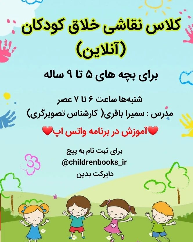 لطفا کپشن رو تا انتها بخونید👇 خووووب ثبت نام کلاسهای بهاره هم داره انجام میشه🥰 کلاس نقاشی کودکان ۵ تا ۹ ساله با هدف آموزش اصولی از پایه و پرورش خلاقیت کودکان ✅ ترم جدید کلاس نقاشی آنلاین 🖌 . ✅ شنبه ها ساعت ۶ تا ۷ عصر ✅ شروع کلاسها از ۲۰ فروردین ✅ کلاسها به صورت آنلاین در اپلیکیشن واتس اپ برگزار میشه و بچه ها باید اون ساعت سر کلاس حاضر باشن ✅ مدرس سمیرا باقری(خودم) کارشناس تصویرگری ✅ هزینه ۲۲۰ هزار تومن ✅ ۱۰ جلسه و هر هفته یک جلسه ✅ آموزش با تکنیک پاستل روغنی و گواش ✳ نمونه نظرات مادر بچه ها در مورد کلاسهامون در اسلایدهای بعدی هست ❤برای ثبت نام لطفا دایرکت بدین🥰 اگر سوالی دارین بپرسید👇 . . #کلاس_نقاشی_کودکان #نقاشی_کودکانه
