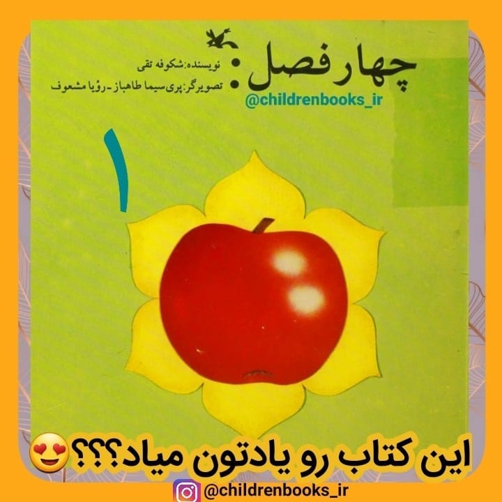 کتاب " چهار فصل" نویسنده: شکوفه تقی تصویرگر: پریسیما طاهباز،رویا مشعوف انتشارات کانون پرورش فکری کودکان و نوجوانان ۱۳۶۸ ادامه در پست بعدی... در این کتاب سعی شده به زبان خود بچه ها شعرها سروده شوند . . . #الف_چیلدرن_بوکز #نوستالژی_چیلدرن_بوکز #فصل #کتاب #کودک #آموزش_فصل #کودکان #نوجوان #شعر_کودکانه