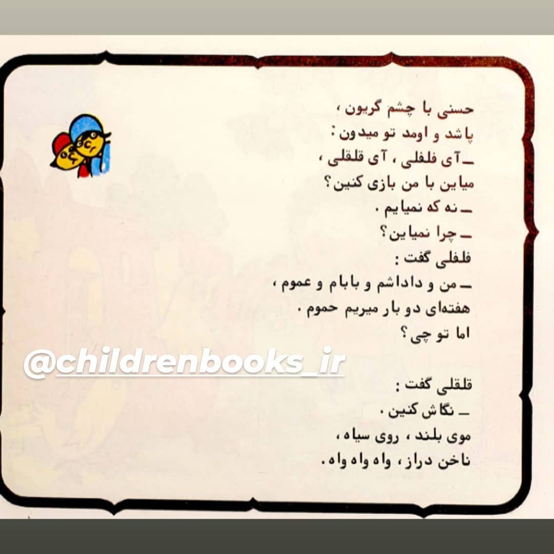 قسمت دوم و پایان کتاب کسی هست این کتابو نداشته یاشه آیا؟؟؟؟ 🤗🤗🤗 😍😍😍😍😍 عنوان :حسنی نگو یه دسته گل پديدآورنده :شعر: پورنگ تصويرگر :کیانوش ناشر :تهران: هنرور سال انتشار :1382 🥰🥰🥰🥰🥰 #الف_چیلدرن_بوکز #ب_چیلدرن_بوکز #کتابخوانی_مجازی #کتابخوانی #کتاب_خوب #قصه_خوانی #قصه_گویی #شعر_کودک #شعر #شعر_کودکانه👶 #شعر_قدیمی #چیلدرن_بوکز_نوستالژی #نوستالژی_دهه70