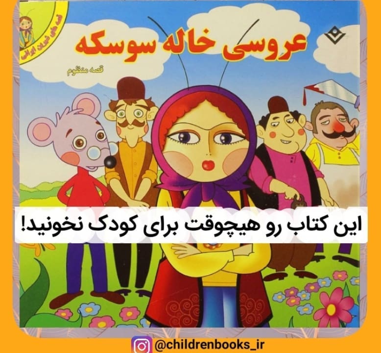 امروز میخوام بپردازم به بدترین قصهی محبوب در فرهنگ ما!!!!! لطفا کپشن رو تا انتها بخونید. قصه خاله سوسکه از بدترین و مضرترین قصه های قدیمی ایران است که متاسفانه کتاب آن به علت ناآگاهی والدین برای کودک خریده میشود و یا به تئاتر می رویم تا قصه خاله سوسکه را ببینیم !!! چرا این قصه مضر است؟ چون کودک را مجاب میکند که بعد از ازدواج مرد حق دارد سر زن داد زده یا او را کتک زده و یا درباره او تصمیم بگیرد! در این داستان زن به عنوان یک موجود ضعیف معرفی میشود که برای دیده شدن به لباس های زیبا و آرایش نیاز دارد و مرد هم به عنوان یک موجود حریص معرفی شده که با دیدن یک زن زیبا هوس خواستگاری و ازدواج سرش می افتد و دوست داشتن و احترام در این داستان جایی ندارد! و بسیاری دلایل دیگر که نیاز به زمان طولانی دارد در مورد آن صحبت کنیم... بعضی از کتابها را به عنوان کتاب زرد معرفی میکنیم(کتابی که صرفا برای فروش دکه ای منتشر میشود و بسیار هم از نظر موضوع و محتوی هم از نظر بصری ضعیف و عوام پسند است) این کتاب یکی از زرد ترین کتابهاست! لطفاااااا و خواهشن اگر این کتاب رو دارین مستقیم بندازین توی سطل زباله.... نظر شما در مورد این کتاب چیه؟؟؟ اگر دوست دارین کتابهای بد رو معرفی کنیم لطفا تو کامنت بگین. . . . #کتاب_بد_چیلدرن_بوکز #معرفی_کتاب_بد #کتاب_سوپرمارکتی #کتاب_زرد #مراقب_کودکان_باشیم