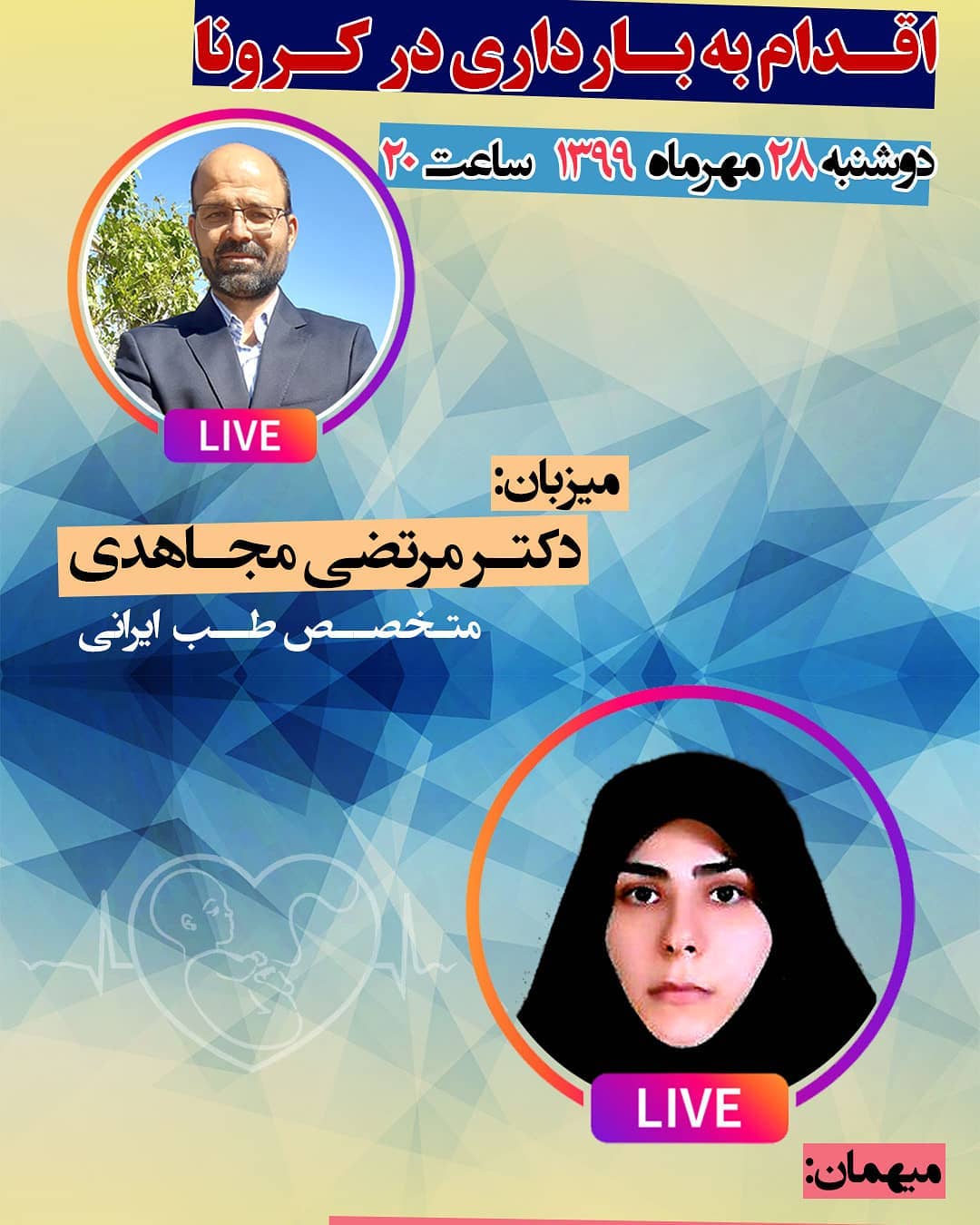 به نام خدا یکی از سؤالات پرتکرار بانوان محترم در این ایام، امکان اقدام به #بارداری_در_دوران_کرونا و مراقبتهای مربوط به آن است. به بهانه #هفته_سلامت_بانوان ان شاا... فردا شب با استاد و همکار محترم آقای #دکتر_مجاهدی در این باره گفتگو خواهیم کرد. #طب_سنتی_ایران #بارداری_کم_خطر #بارداری_سالم #پیشگیری_کرونا @mortazamojahedy @dr.mmashhadi