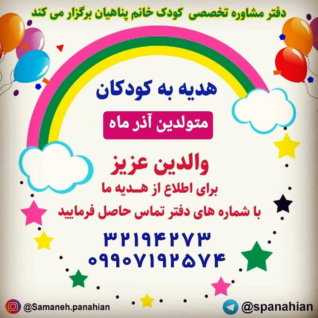 😍💖هدیه تولد به کودکان متولدین آذر ماه😍💖 برای اطلاع از هدیه، با ما تماس بگیرید😊👇 32194273 09907192574 @samaneh.panahian #دکتر_سمانه_پناهیان #روانشناس_کودک #اولین_برگزارکننده_کارگاههای_تخصصی_مادروکودک_در_استان_مازندران #دارنده_مجوز_رسمی_از_سازمان_نظام_روانشناسی_و_مشاوره_کشور