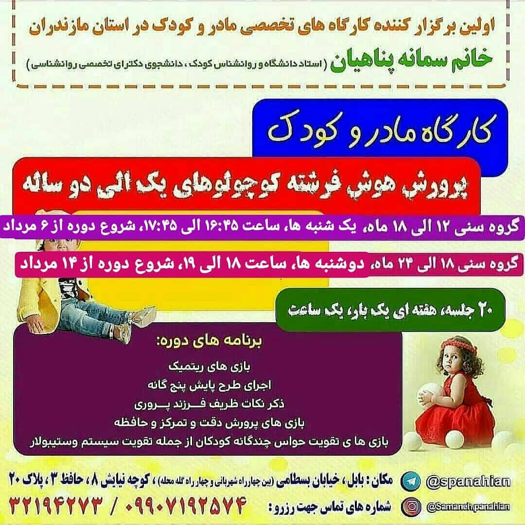 ✨کارگاه های دارای ظرفیت مرداد ماه 💠 شماره های تماس جهت گرفتن اطلاعات بیشتر و ثبت نام: ☎️09907192574 32194273 @spanahian #سمانه_پناهیان #روانشناس_کودک #اولین_برگزارکننده_کارگاههای_تخصصی_مادروکودک_در_استان_مازندران #دارنده_مجوز_رسمی_از_سازمان_نظام_روانشناسی_و_مشاوره_کشور
