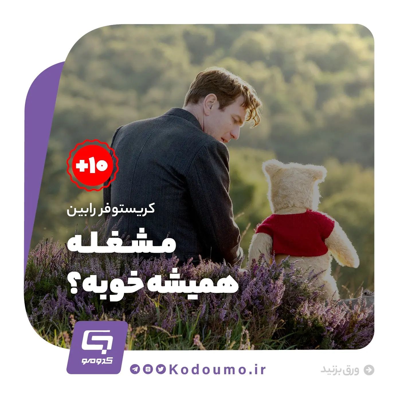 سلام مامان باباهای مهربون 📍تو این روزای تعطیلی تابستون، خیلی وقتتونو نمیگیریم. این پست رو بخونین و برید بگردید. 📍کریستوفر رابین، بعد از 30 سال، زندگی پرمشغلهای تشکل داده و از خانوادۀ کوچک خود غافل شده. اون خبر نداره که در بحبوحۀ مشغلهها، قراره با وینی پو، ملاقات کنه. وقتش رسیده که کریستوفر، ندای «هیچ کاری نکن» رو بشنوه و بخودش بیاد و ... نام انگلیسی اثر: Christopher Robin سال ساخت: 2018 کشور سازنده: آمریکا #کدومو #فیلم #سالم #سرگرمی #تفریح #تابستون #کلاس_تابستونی 🔗 کدومو؛ همپای خانوادهها 🔗 @kodoumo
