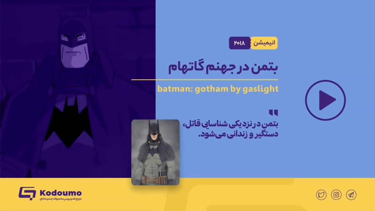 📍بتمن یک ابرقهرمانه و سعی میکنه بدون افشاشدن هویت اصلیش به مردم شهر گاتهام کمک کنه. او سختیهای زیادی تحمل میکنه؛ ولی ناامید نمیشه. 📍لازمه والدین به صحنههای خشونتآمیز فیلم دقت کنن. با این که قالب اثر انیمیشنه؛ اما نوع واکنش هرشخصیت و صحنههای خونریزی میتونه بر مخاطب کودک تأثیر منفی داشته باشه. 🔗 کدومو؛ همپای خانوادهها @Kodoumo #انیمشین #بتمن #کدومو #خانواده
