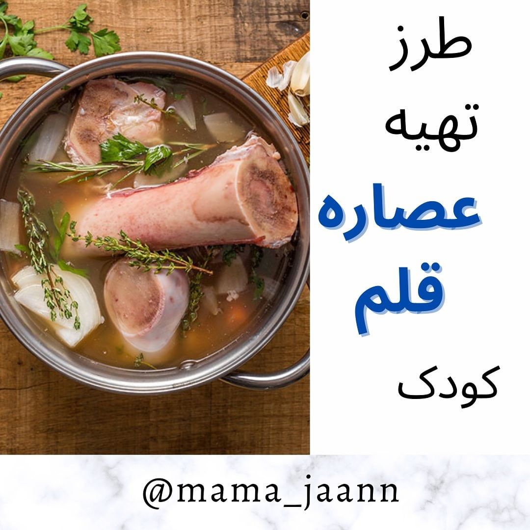سلام و شب بخير🥰🤩 اگر از اكسپلور يا هشتگ پست ماماجان رو ميبيني خوشحال ميشم به خانواده٦٥هزارنفره ما بپيوندي😍😍⭐️ @mama_jaann @mama_jaann ✳️منظور از آب قلم🦴، جوشاندن قلم گاو یا گوسفند یا هر دو را به مدت چند ساعت است. این روش، مایه قلم را خارج میکند و آبی نسبتا چرب، پرخاصیت و ژلاتینی مانند را بعد از ساعتها جوشاندن قلم، به جا میگذارد. ⭐️در این پست طرز تهیه عصاره قلم را به شما آموزش میدهیم تا برای قوام دادن به سوپ 🥘و آش و افزایش خاصیت غذاها، از آن استفاده کنید. 🌸🌸🌸🌸🌸🌸🌼🌼🌼🌼🌼 1️⃣ابتدا قلم ها رو خوب بشوريد و در قابلمه بزرگي بيندازيد. 2️⃣براي هر٢كيلو قلم٢عدد پياز 🧅 را بریزید.ميتونيد براي اينكه عطر و طعم بهتري داشته باشه از مواد مختلفي مثل برگ بو،سير🧄،هويج🥕،كرفس و ...استفاده كنيد. 3️⃣به اندازه اي كه آب روي قلم ها رابگيرد آب درون قابلمه بريزيد و بگذاريد تا جوش بياد و كف ايجاد شده روي اون رو بگيريد و بذاريد تا ١٠ساعت خوب بپزه . 4️⃣بذاريد كمي كه سرد شد مغز قلم ها رو خارج كنيد و تمام مواد رو درون صافي بريزيد تا مطمئن بشيد كه استخوان ريز نداره. 5️⃣در آخر ميتونيد مواد رو هم داخل آبش بريزيد و اگه فقط ميخوايد عصاره بدون مواد باشه همينطوري داخل قالب هاي يخ بريزيد و داخل فريزر قرار بديد تا يخ بزنه. 6️⃣بعد عصاره ها رو از قالب خارج كنيد و داخل كيسه فريزر داخل فريزر نگه داريد.🥰😍 ✅از عصاره قلم مي تونيد داخل سوپ ها،كته، پوره و...استفاده كنيد.و يكي از مواد پرخاصيت و عالي واسه وزنگيري كودكان محسوب ميشه👌🏻 ممنون كه قلب ❤️بي رنگ و رنگيش مي كنيد و مي فرستيد براي دوستاتون😍 #عصاره_قلم #عصاره_پای_مرغ #غذای_کمکی_کودک #وزنگيري_كودك#غذاي_كودك #غذاي_ايراني
