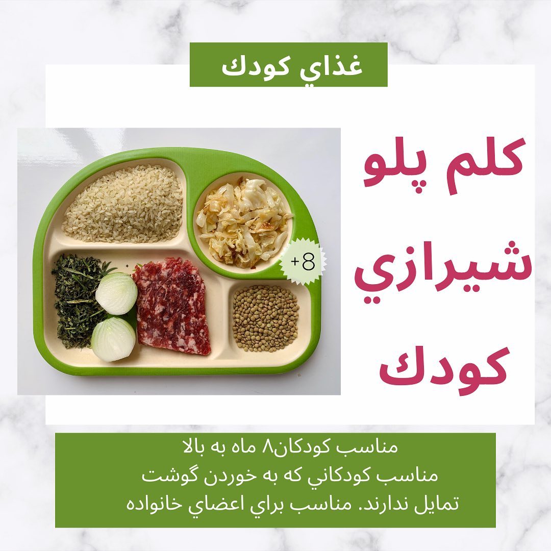 سلام سلام✋🏻✋🏻 من اومدم با دستور كلم پلو شيرازي كه كلي خاطرخواه داره.😌😌اين غذا رو واسه خانواده هم ميتونيد بزاريد(واسه بچه هاي كوچك خيلي حواستون به قلقلي ها باشه گلوشون گيرنكنه) مواد لازم كلم پلو شيرازي(+٨) كلم قمري يا كلم پيچ:نصف عدد كوچك آبليموترش:نصف قاشق غذاخوري🍋 پياز:١عدد🧅 گوشت چرخ كرده:٨٠گرم🥩 آردنخودچي:١قاشق مرباخوري سبزي كلم پلو(ترخون+تره+جعفري+ريحان+شويد) زردچوبه و ادويه كاري:به ميزان لازم برنج:١پيمانه عدس:١قاشق غذاخوري 1️⃣برنج را از ٣-٤ساعت قبل خيس كنيد.آن را بپزيد و آبكش كنيد.(كمي زردچوبه داخل آب برنج بزنيد.) 2️⃣كلم رابه صورت خلالي خرد و آنرا بشوييد.داخل تابه اي كه كمي روغن دارد روي حرارت بزاريد تا آب ش كشيده و كمي سرخ بشه در آخر ابليمو بزنيد و از روي حرارت برداريد. 3️⃣پياز رو رنده و آب ش رو بگيريد سپس گوشت +آردنخودچي+ادويه ها(بالاي يكسال نمك و فلفل)را اضافه كنيد خوب ورز بديد تا به خورد هم بره.حالا قلقلي ها كرچك درست كنيد و داخل تابه با كمي روغن سرخ كنيد. 4️⃣قلقليها و كلم ها و عدس پخته رو باهم مخلوط كنيد و نصف سبزي خشك رو بهش اضافه كنيد كمي كه تفا خورد از حرارت برداريد. 5️⃣كف قابلمه نان يا سيب زميني بندازيد و برنج و مواد،و مابقي سبزي رو لايه لايه بزاريد تا تموم بشه.٤٥دقيقه بزاريد تا دم بكشه😋😋😋 نوش جان🥰🥰🥰 ✅نكته: 💛اگر از سبزي تازه استفاده ميكنيد بايد ٥دقيقه اخر پختِ برنج به اب برنج اضافه كنيد تا نرم بشه. 💛اين غذا در صورتي كه كوچولوي شما بلد باشه بجوه مجازه و ميتونيد برنج رو كمي شفته تر برداريد تا راحتتر بخوره✅ قلقلي ها رو نصف كنيد و به بچه هاي كوچك بدهيد. 💛اين مقدار مواد براي حدودا يك نفر خوش اشتها😂كافيه. 💖كلي اموزش هاي خفن واسه شما مامان مهربون داخل پيج داريم😍خوشحال ميشم مارو دنبال كنيد👌🏻👌🏻 @mama_jaann @mama_jaann @mama_jaann #تغذيه_كودك #غذاي_كودك #كودك #تربيتكودك #رشدكودك #قدكودك #تغذيهكودك