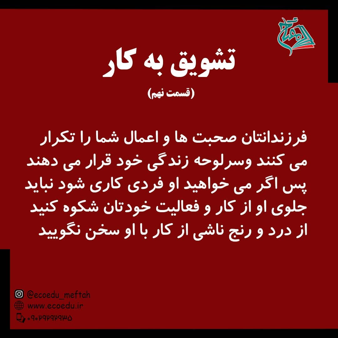 🌹 "تشویق کودکان به کار کردن" 🔸قسمت نهم🔸 . از درد و رنج ناشی از کار با " کودکان" صحبت نکنید!!! . اجازه دهید کارکردن در ذهن آنها یک ارزش مثبت تلقی شود👌 . ◀مفتاح؛موسسه فرهنگی هنری تربیت اقتصاد حکیم @ecoedu_meftah #کار#فعالیت#کار_اقتصادی#کاری#کودکی#کودک#نوجوان#کودک_کار_افرین#کارفارینی_کودک#اقتصاد#اقتصادی#تربیت_اقتصادی_کودکان #تربیت_صحیح #تربیت_اقتصادی#موسسه_فرهنگی_تربیت_اقتصاد_حکیم #مفتاح