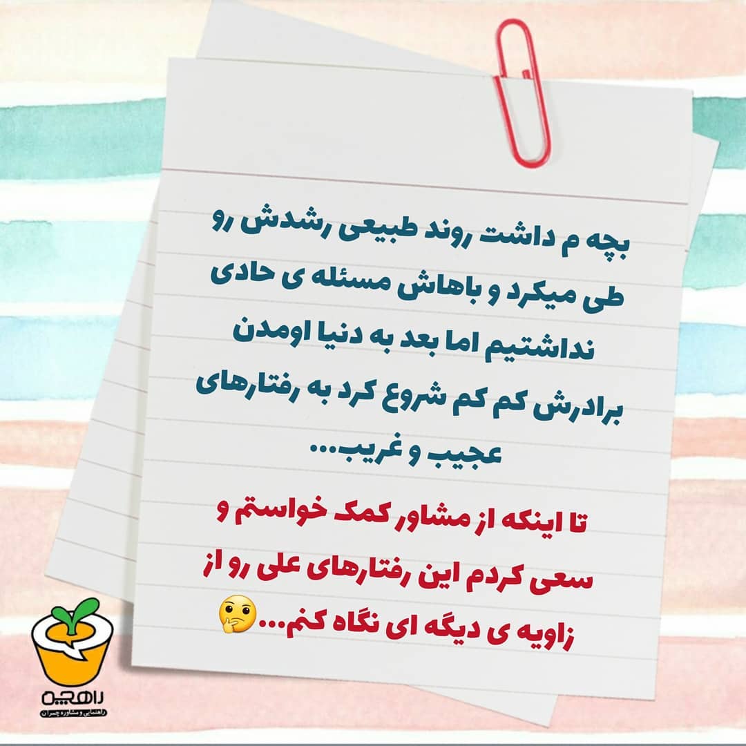 مسئله ی پست قبل رو یادتونه؟ بیاید از زبان یه مادر مسئله و پاسخ رو بخونیم👇 . علیِ من داشت روند طبیعی رشدش رو طی میکرد و باهاش مسئله ی حادی نداشتیم اما بعد به دنیا اومدن برادرش کم کم شروع کرد به رفتارهای عجیب و غریب... . با اینکه بهش توجه هم میکردیم اما تو مهمونی خودش رو بیخودی زمین مینداخت، از عمد خنگ بازی درمیاورد...باهام همراهی نمیکرد و حسابی کلافه م کرده بود... تا اینکه از مشاور کمک خواستم و سعی کردم این رفتارهای پسرمو از زاویه ی دیگه ای نگاه کنم🤔 . بذارید همینجا به عنوان یه مادر بهتون بگم که واااقعا سخته باخودتون یه چیزایی رو هضم کنید اما وقتی بپذیرید راه حل، یه روند زمان بره و به صبرشما نیاز داره، کمتر آزرده خاطر میشید و ادامه میدید...😇 . راستش من فهمیدم بیش از حد از پسر ۷ ساله م توقع داشتم، درسته بچه ی بزرگتر هست اما هنوز تو دنیای کودکی هست پس نباید توقع رفتاری بیشتر از سنش داشته باشم. از طرف دیگه وقت زیادی برای پسرم نمیذاشتم چون حسابی شیطنت های بچه ی دوم درگیرم کرده بود و حساسیت من، علی هم حساس کرده بود... . پس تصمیم گرفتم با راهکارهای ساده و کاربردی مشاور پسرم رو با خودم همراه کنم. اول از همه دیگه جلوی علی از شیرین زبونی های داداشش تعریف نمیکردم. توجهم به پسرم رو بیشتر کردم، کارهاشو توصیف میکردم، زمان اختصاصی براش گذاشتم که توش بازی های دست ورزی زیادی انجام می دادیم، بیشتر بغلش کردم و بوسیدمش... کم کم یاد گرفته یه چیزهایی رو بخونه برای همین بعضی وقتا با نقاشی و کلمه های ساده بهش ابراز علاقه میکنم.😍 . تازه یه گوشه ای ازخونه رو مخصوص کاردستی ها و نقاشی های علی گذاشتم تا بفهمه کارهاش چقدر ارزشمنده.🤩 . حس میکنم از وقتی کمتر بهش امرو نهی میکنم خودمم حس بهتری دارم، به جاش بهش مسئولیت های ساده میدم که احساس مفید بودن داشته باشه و منم کمتر بکن،نکن داشته باشم. خداروشکر خیلی بهتره و میتونم بگم تقریبا دیگه اصلا رفتارهای عجیب و غریبش رو انجام نمیده. . مهم تر از هرچیزی علی با من همراه تر شده و حتی رابطه ش با فرزند کوچک تر هم بهتر شده😊 . #تجربه_مادرانه#تجربه_مادر#پرسش_و_پاسخ #سوال_تربیتی_کودک #تربیت_فرزند #والدگری #والدین_آگاه #همراهی_کودک