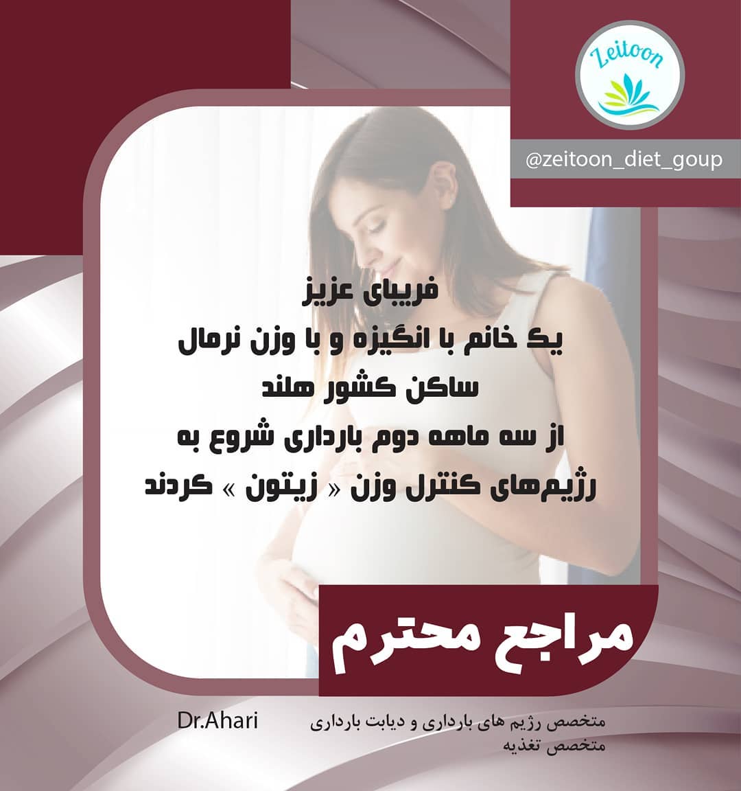 کلینیک آنلاین "تغذیه بارداری" ارائه رژیم های تخصصی بارداری/ دیابت بارداری/ شیردهی اهری، مشاور ارشد تغذیه از دانشگاه شهید بهشتی دریافت رژیم : دایرکت www.zeitoondiet.com