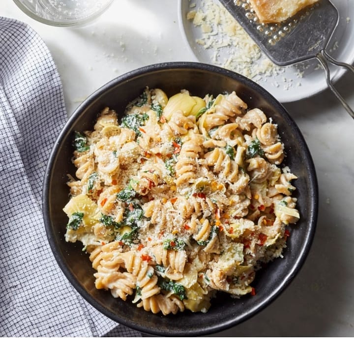 یه دستور غذایی که گوشت نداره اما پروتئین خوبی داره پاستا با اسفناج و مغز مارچوبه: یک بسته پاستا را آبکش کنید و کنار بگذارید. ۱ کیلو اسفناج را با آب خودش بخار پز کنید و مغز ۴تا۵ عدد مارچوبه را در اورید و با کمی روغن کانولا تفت دهید . مواد که سرد شد ۴ ق غ پنیر خامه ای را به اسفناج و مارچوبه اضافه کنید و سه دقیقه روی حرارت کم هم بزنید. پودر سیر را هم در حد پاشیدن به انها اضافه کرده و با پاستا کاملا مخلوط کنید. بعدازینکه کاملا مخلوط شد در ظرف سرو کشیده و ۴ ق غ پنیر پارمزان رنده شده بریزید خسته نباشید 😁 و نوش جان😋😋😋😋😋 #غذا_رژیمی
